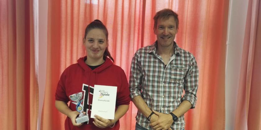 Nach einigen Wochen Training in den Disziplinen Weitsprung, Ballwurf, Sprint und Ausdauerlauf (hier war die Begeisterung nicht so groß puh, anstrengend) war am 01. Juni bei Sonnenschein endlich Wettkampftag. Alle Schülerinnen und Schüler der Klassen 6 bis 10 gaben ihr sportlich Bestes. Sand spritzte auf, Bälle flogen umher, der Schweiß floss und Schreie der Begeisterung oder einfach nur der Anstrengung waren zu hören. Fleißig trugen die Lehrkräfte die Zeiten und Weiten in die Wettkampfkarten ein, feuerten an und würdigten die Leistungen ihrer Schüler. Diese wurden mit reichlich Teilnahmeurkunden sowie einigen Siegerurkunden und einer Ehrenurkunde gewürdigt. Diese eine Ehrenurkunde hat unter allen Schülerinnen und Schülern Cecilia-Helene Stock aus Klasse 9 b erhalten. Herzlichen Glückwunsch dazu!