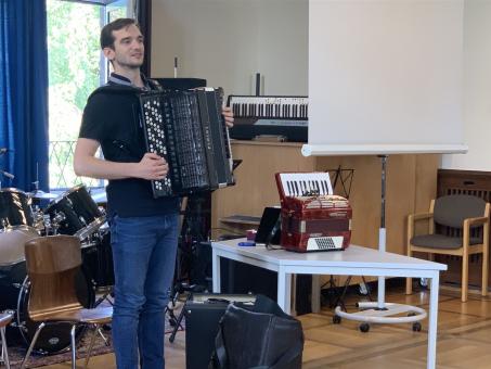 Mit dem Projekt „Klassik im Klassenzimmer“ erhalten jedes Jahr junge Musiker die Gelegenheit den Schülern der Region sich und ihre Instrumente vorzustellen. Am 15. Juli war Herr Nemanja Lukic mit seinen Akkordeons zu Gast in der Pestalozzischule. Er verstand es auf außerordentlich unterhaltsame und kurzweilige Weise, die Schülerinnen und Schüler der fünften bis achten Klassen mit seinen Instrumenten zu begeistern. Dabei wurden viele interessierte Schülerfragen, wie z. B. „Wie entsteht der Ton beim Akkordeon?“, „Was machen die Knöpfe am Akkordeon?“, „Was schwingt beim Akkordeon?“ beantwortet und kleine Hörproben gespielt.