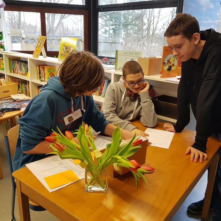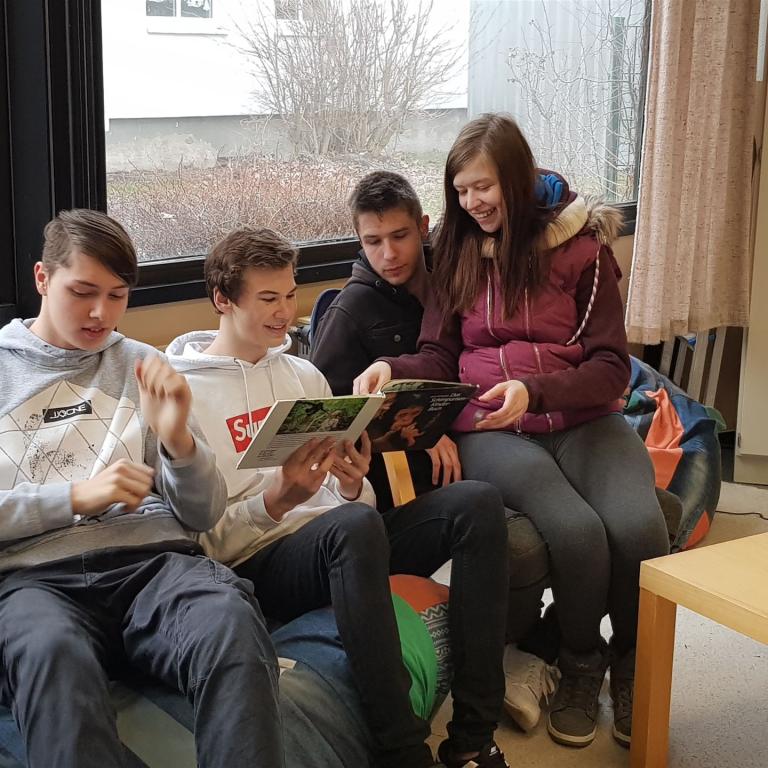 In Lesestunden können sie im Klassenverband in der Bücherei "schmökern" oder für verschiedenste Unterrichtsthemen Material sichten.
