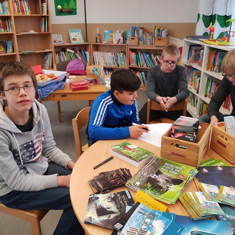 Ein Team von Schülern der Klasse 7 bis 10 werden die Ausleihe zukünftig mit übernehmen. Vorlese-Aktionen und Lese-Unterstützung sind auch mit Hilfe der Ehrenamtlichen Ingrid Rautenberg geplant. Wir freuen uns auf viele Leser. Die Bücherauswahl für ältere Jugendliche möchten wir gerne noch erweitern. Vielleicht finden wir dafür Sponsoren?