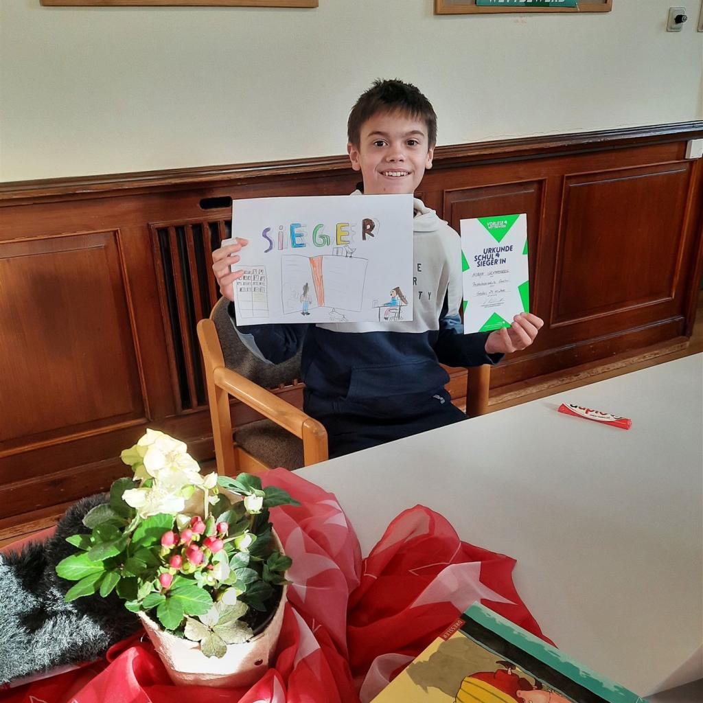 Norvyn Graffenberger gewinnt den Vorlesewettbewerb an der Pestalozzischule
