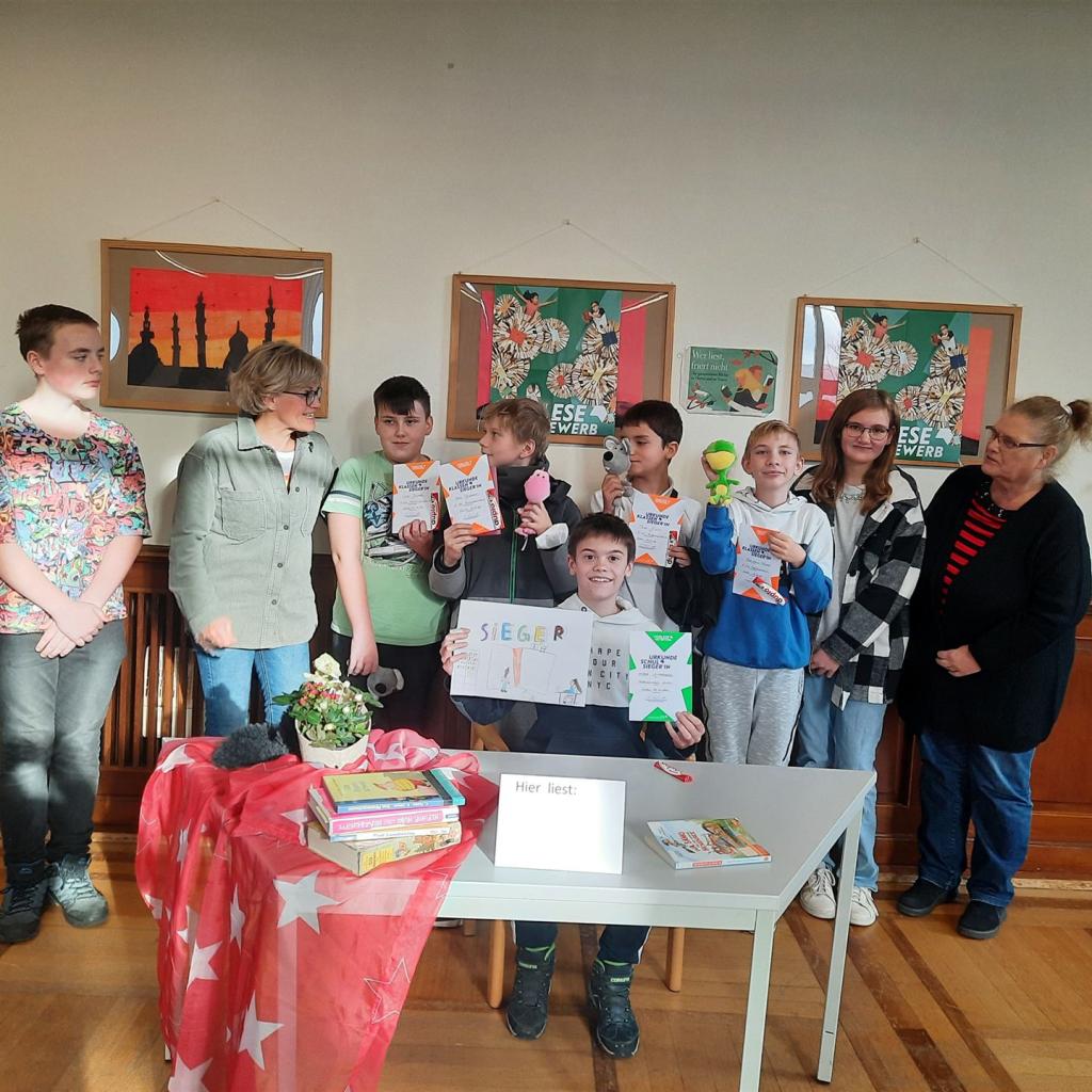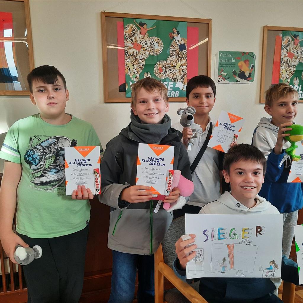 Die klassen- und schulbesten Vorleser*innen wurden mit einer Urkunde ausgezeichnet. Der Schulsieger bekam zusätzlich einen Büchergutschein.