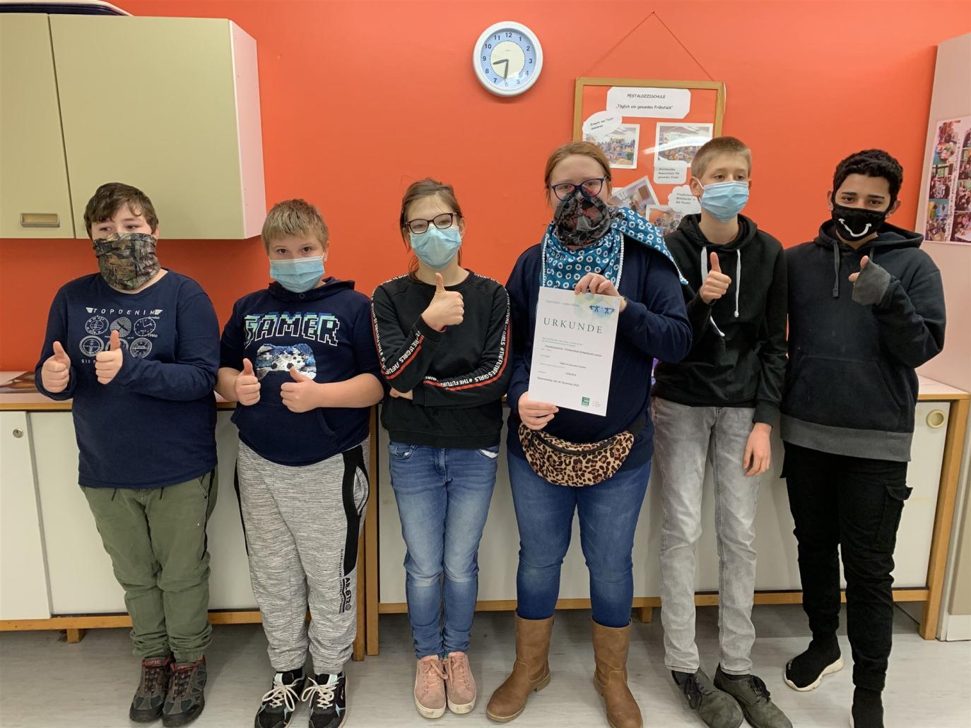 Die Schülerinnen und Schüler der Pestalozzischule freuen sich über eine Auszeichnung in Höhe von 1500 Euro. Das Projekt „Täglich ein gesundes Frühstück“ wurde von der Jury der PSD Bank Braunschweig als eines der besten Projekte, die sich neben 56 anderen der Region um den Wettbewerb „Eure Vision - unsere Aktion“ beworben hatten, prämiert.