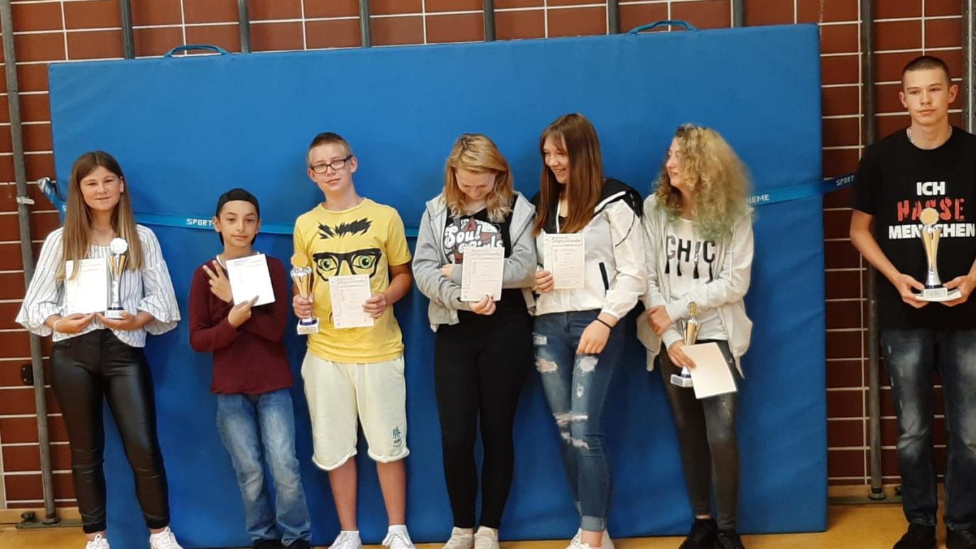 Fußball wurde in gemischten Teams mit Jungen und Mädchen gemeinsam gespielt. Die Klassen 5 bis 7 sowie 8 bis 10 spielten jeweils ihr eigenes kleines Turnier. Trainer waren die Lehrkräfte unserer Schule, die ihre Schützlinge reichlich anfeuerten. Die Mannschaften wurden aus den verschiedenen Klassen gelost.