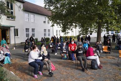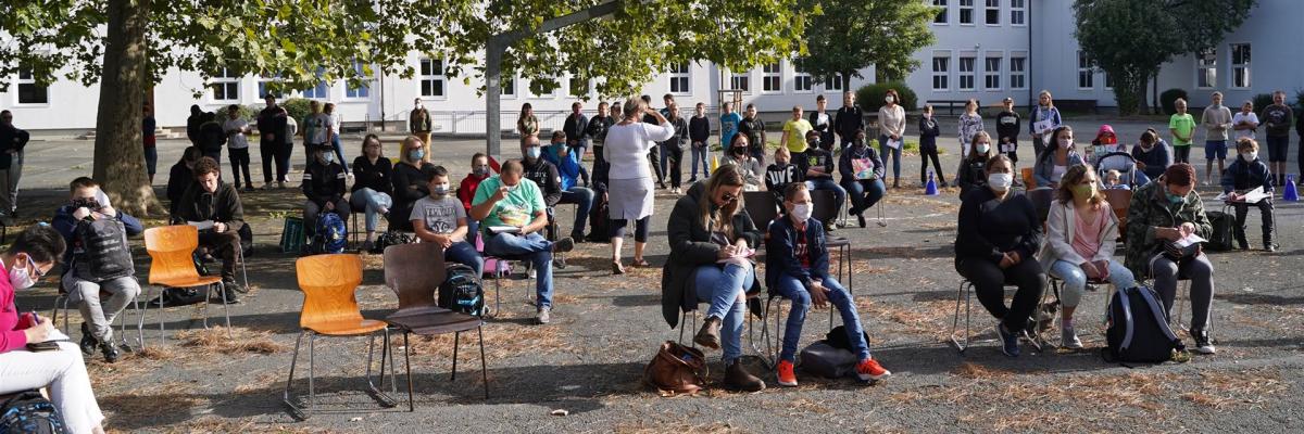 Zu Beginn des neuen Schuljahres 2020/21 begrüßte die Schulleiterin der Pestalozzischule Goslar Martina Schimmelmann alle Schülerinnen und Schüler unter Wahrung der Corona-Abstandschulregeln auf dem Schulhof auf das Herzlichste.