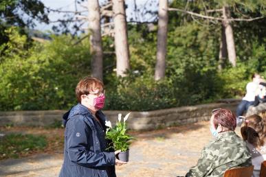 Frau Schimmelmann wies darauf hin, dass der sogenannte eingeschränkte Regelbetrieb von allen Beteiligten beim Einhalten der vom Kultusministerium vorgegebenen Hygieneregeln viel Disziplin und gegenseitige Rücksichtnahme abverlange. Diese Rücksichtnahme sei eine zarte Pflanze, die es zu hegen und pflegen gilt. Symbolisch bekam daher auch jede Klasse eine neue Pflanze für ihren Raum, die sorgfältig gepflegt werden soll.