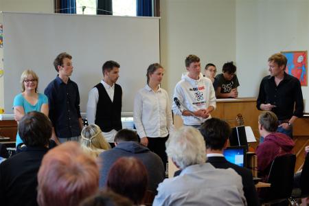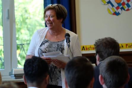 Martina Schimmelmann sprach in ihrer Rede die Bedeutung sozialer Kompetenzen an - und freute sich, dass ihre Schüler dies aber schon häufig unter Beweis stellten. Pünktlichkeit, Höflichkeit, Zuverlässigkeit, Zielstrebigkeit und Verantwortungsbewusstsein sollten auf dem künftigen Lebensweg stete Begleiter sein.