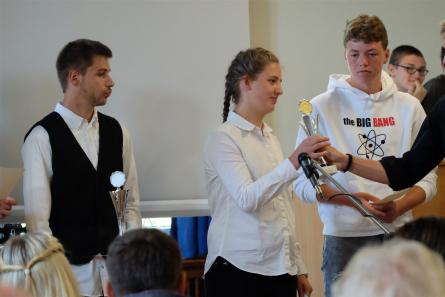 Anschließend erinnerte Jutta Ky-nast an den Geschichtswettbewerb über Goslar, für den die beteiligten 17 Schülerinnen und Schüler eine Urkunde des Bundespräsidenten erhalten hatten. Sportliche Pokale überreichte Uwe Jürgens an Marleen, Marvin, Lukas, Julien und Cecilia.