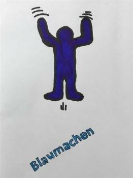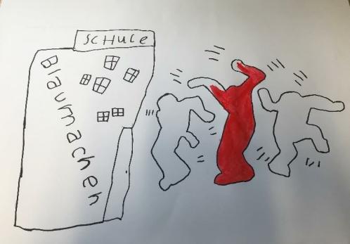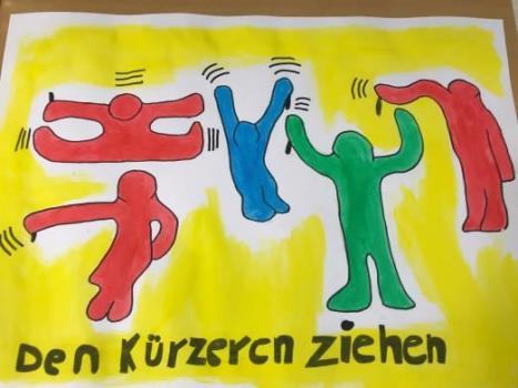 Zeichnen von Entwürfen (Arbeitsblätter zu Keith-Haring-Bildern waren hilfreich) / Bleistiftzeichnung