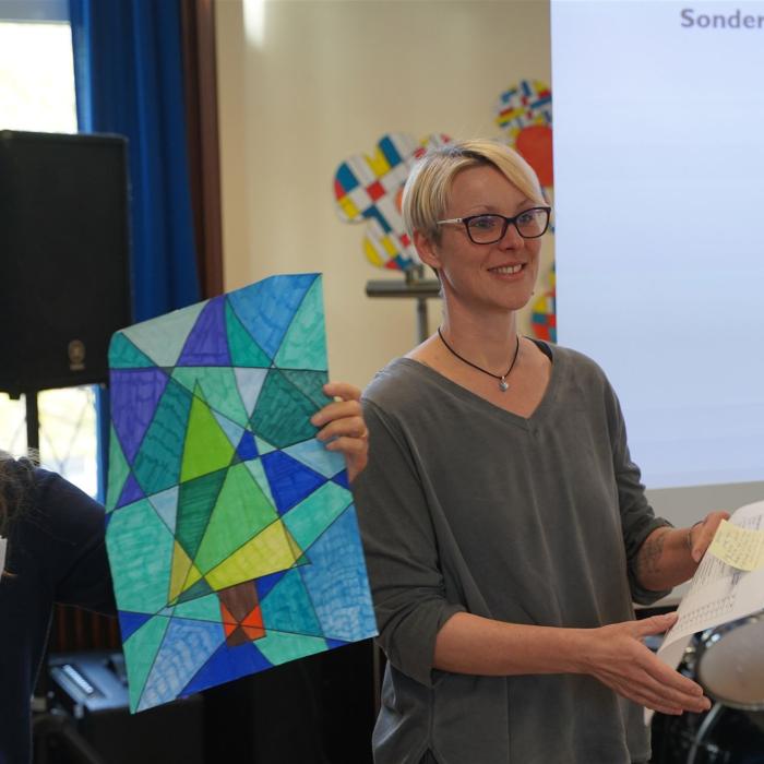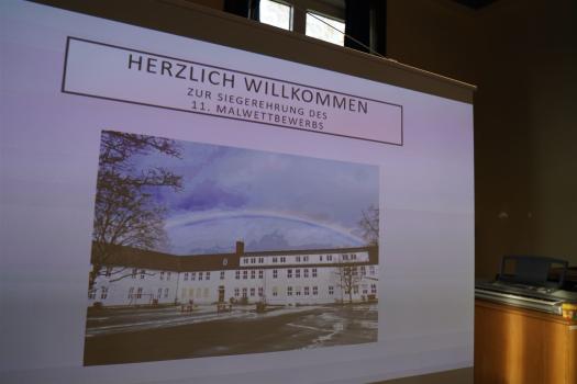 Nachdem die Schulleiterin Martina Schimmelmann alle Schülerinnen und Schüler in der rappelvollen Aula begrüßt hatte, stellte Frau Lumack die Bilder vor, die einen Sonderpreis erhalten sowie die zwölf Siegerbilder, aus denen Weihnachtsgrußkarten hergestellt werden. Insgesamt entstanden - zumeist noch bei hochsommerlichen Temperaturen - 130 weihnachtliche Motive, aus denen die Jury die preiswürdigen Bilder ausgesucht hat, was angesichts der tollen Bilder gar nicht so einfach war.