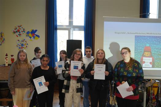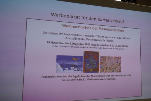 Alle Sieger wurden mit einem Preis bedacht, der wie in jedem Jahr dankenswerterweise von der Volksbank Nordharz gesponsert worden ist. Der durch den Weihnachtskartenverkauf erzielte Erlös kommt dem Förderverein der Schule - und somit natürlich der Schülerschaft - zugute. Wo können die Karten zum Preis von 0,80€ pro Karte oder für 8,-€ für den ganzen 12er-Satz erworben werden?: