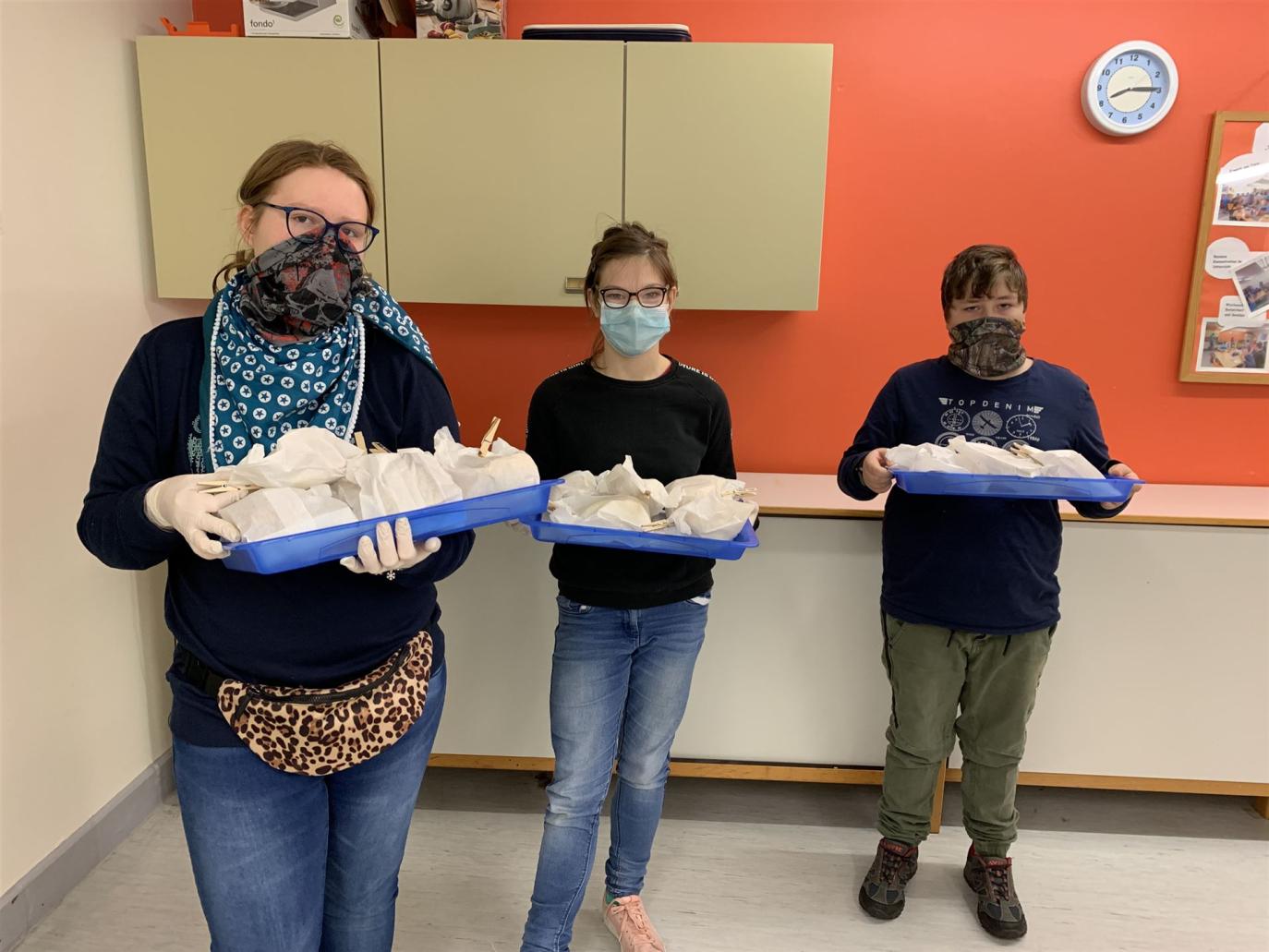 Nachdem die Bewerbungsunterlagen im Februar abgeschickt worden waren, erfolgte kurze Zeit später coronabedingt erst die Schulschließung und dann nach Rückkehr in Szenario A, das Aussetzen des Frühstücksprojektes. Seit Oktober erhalten alle Schülerinnen und Schüler wieder regelmäßig täglich ein gesundes Frühstück - angepasst an den aktuellen „Rahmen-Hygieneplan Corona Schule“ der Landesregierung. So wird das Frühstück zur Zeit leider nicht gemeinschaftlich im Frühstücksraum der Schule eingenommen, sondern einzeln verpackt in die Klassen geliefert und dort mit Abstand am Sitzplatz eingenommen.