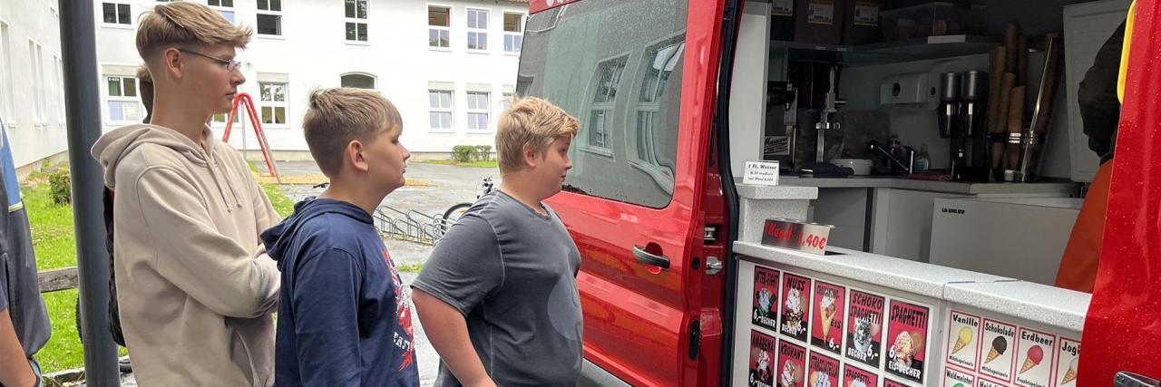 Am letzten Schultag bekamen unsere Pestalozzischüler Besuch vom Eiswagen des Cafés „Eiszeit“.