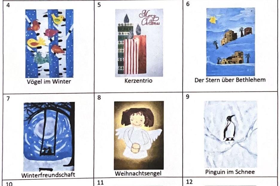 Auch in diesem Jahr haben die Schülerinnen und Schüler der Pestalozzischule Goslar wieder sehr schöne Bilder im Rahmen des 12. Malwettbewerbs gestaltet, die wir als Weihnachtskarten 2023 anbieten.